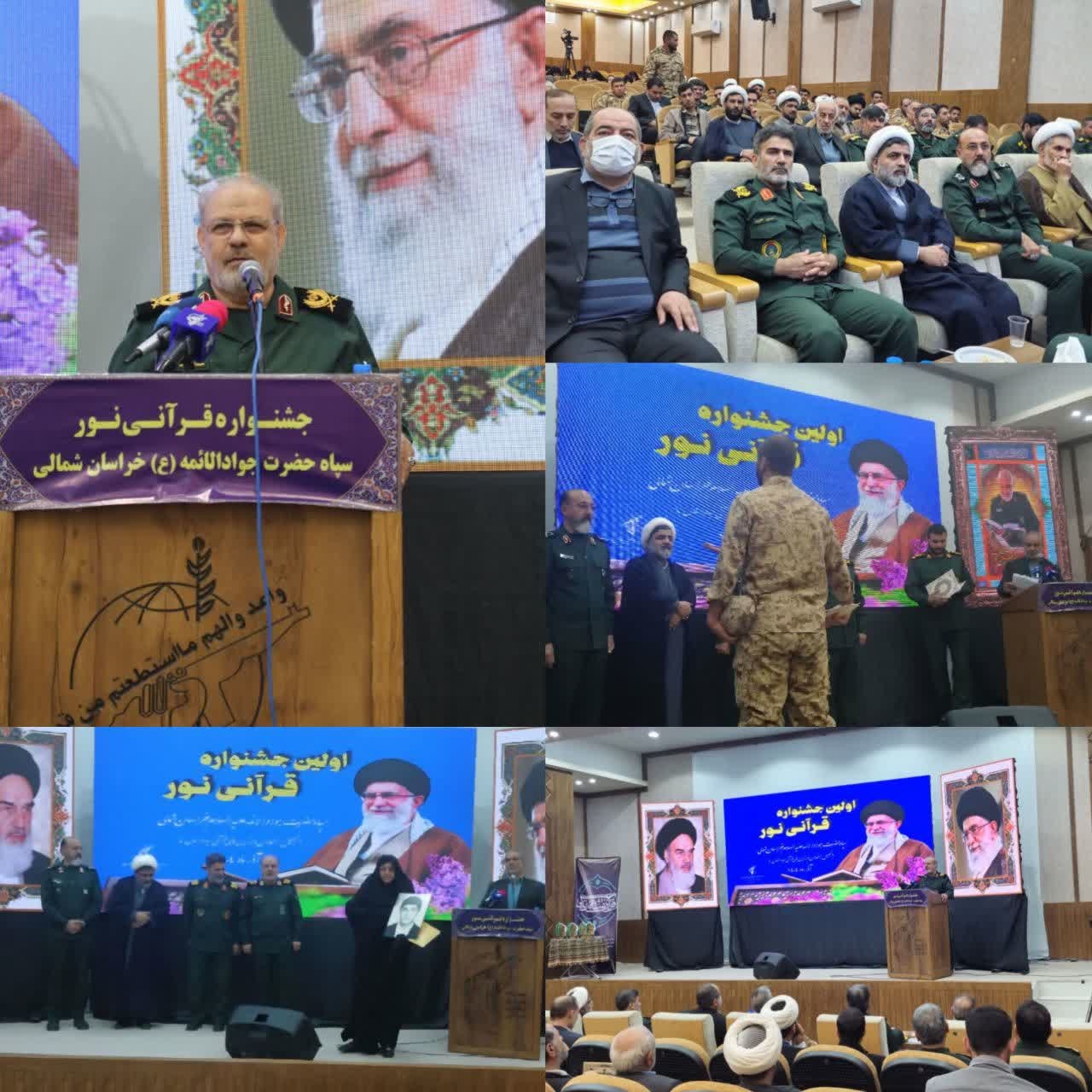 اولین جشنواره قرآنی «نور» به همت سپاه حضرت جوادالائمه(ع) خراسان شمالی برگزار شد. این مراسم با سخنرانی سردار حسین محبی، معاون فرهنگی و تبلیغات سپاه پاسداران انقلاب اسلامی همراه بود.