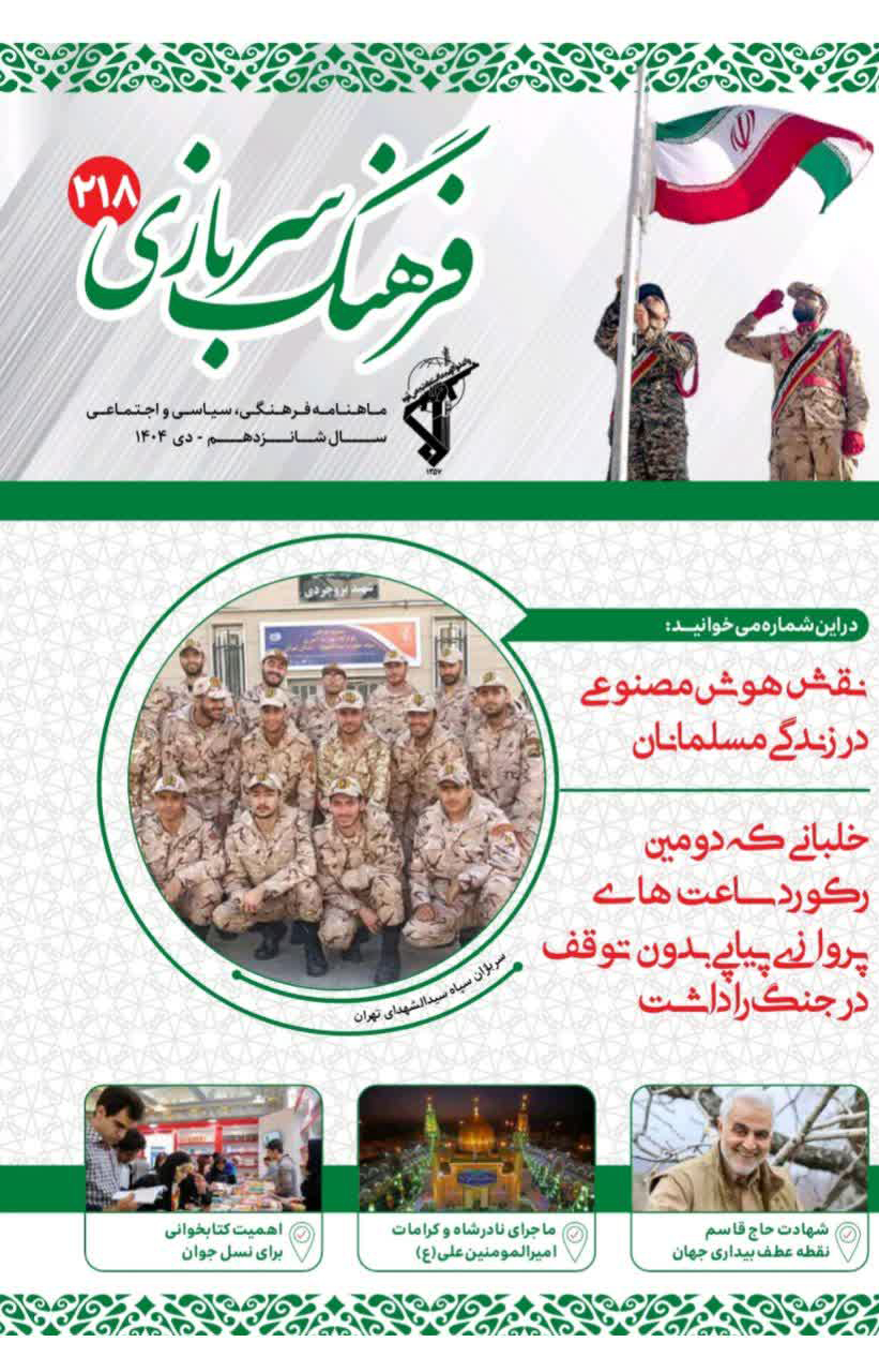 ماهنامه فرهنگ سربازی شماره دویست وهجده ،دی ماه1404 منتشر شد.آنچه دراین شماره میخوانید: